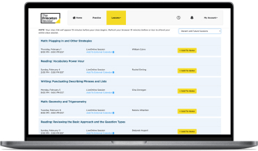 - Unlimited SAT Advantage Sessions - additional LiveOnline instruction in 12 unique high-yield test concepts followed by Q&A.